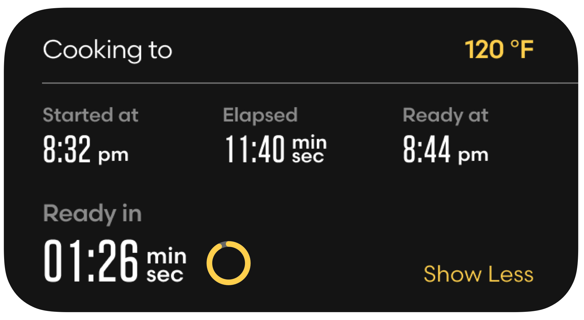 Simply enter a target temp—in a few minutes you’ll get a countdown that tells you exactly when your food will be ready.